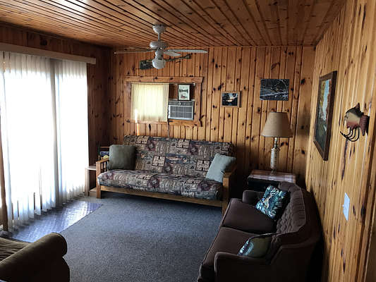 A cabin may have up to 2 additional guests (sleeper sofa) over the base capacity for an extra person charge of $35/night or $175/week for each person.