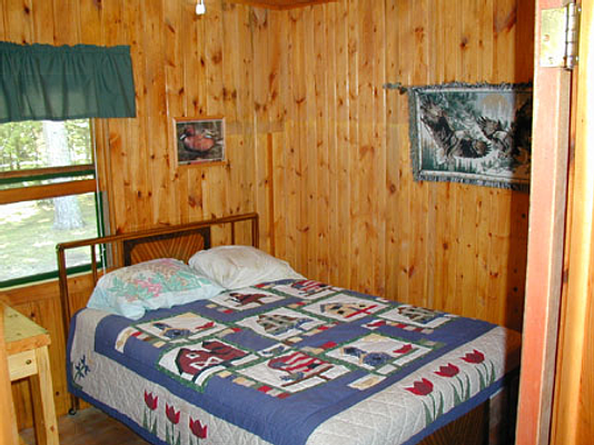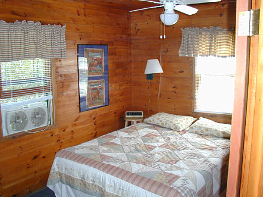 3 bedrooms plus futon. Knotty pine interior on heavily wooded private spot. Full bath with tub. AIR CONDITONED (Beds; 1 queen, 1 full & 2 twin) Capacity 6*