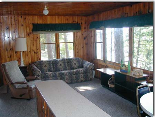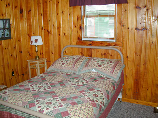 3 bedroom plus futon. Knotty pine interior, living/dining combination. Wall of windows over looking the lake. AIR CONDITIONED (Beds; 2 Queen, 2 twin) Capacity 6*