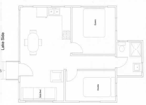 2 bedrooms plus futon, knotty pine interior, living/dining combination, large windows looking out to lake. AIR CONDTIONED (Beds; 1 queen & 2 Twin) Capacity 4*